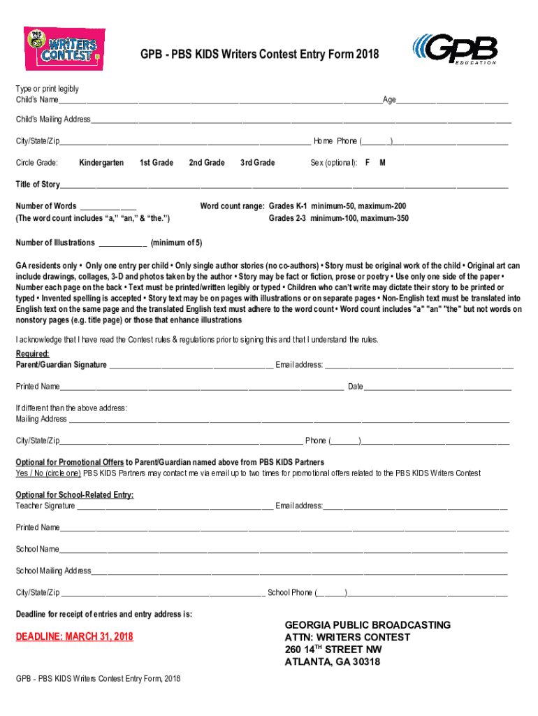 Get the free Online The PBS KIDS Writers Contest is produced ...