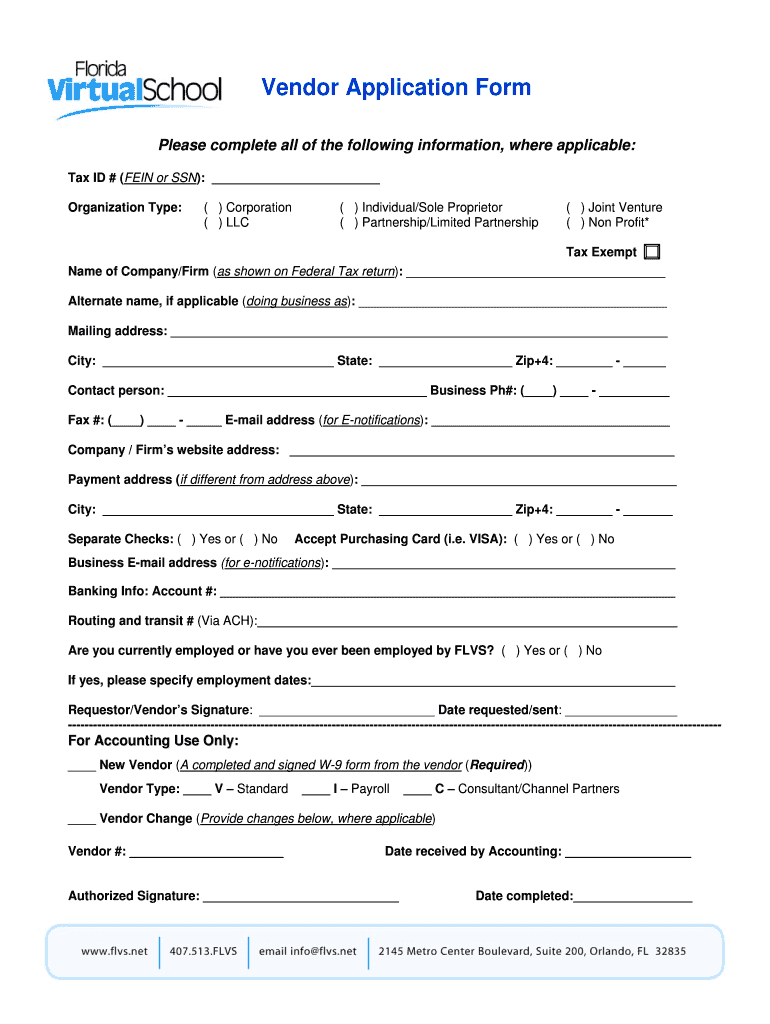 Get the free Vendor Application Form