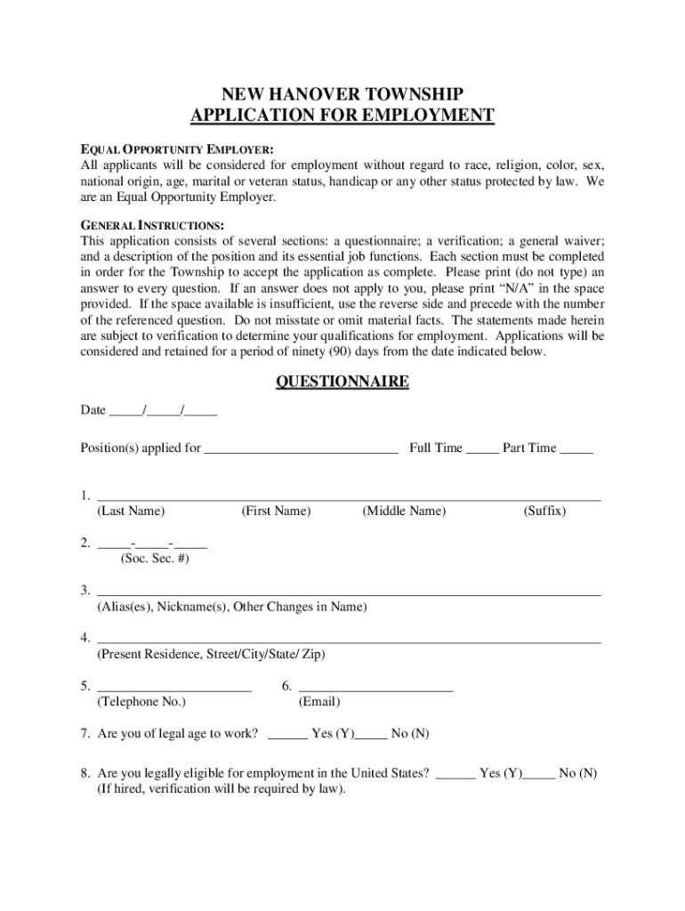 pdfFiller makes it easy to finish and sign new hanover job openings online. It lets you make changes to original PDF content, highlight, black out, erase, and write text anywhere on a page, legally eSign your form, and more, all from one place. Create a free account and use the web to keep track of professional documents.