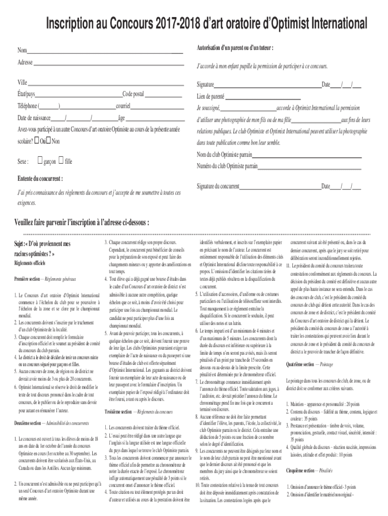 Inscription Au Concourse 20172018 dart orator optimist International Not AdresseJaccorde Mon Enfant pupils la permission DE participle CE concourse. VilleSignaturetat/passcode postalTlphone ()Date