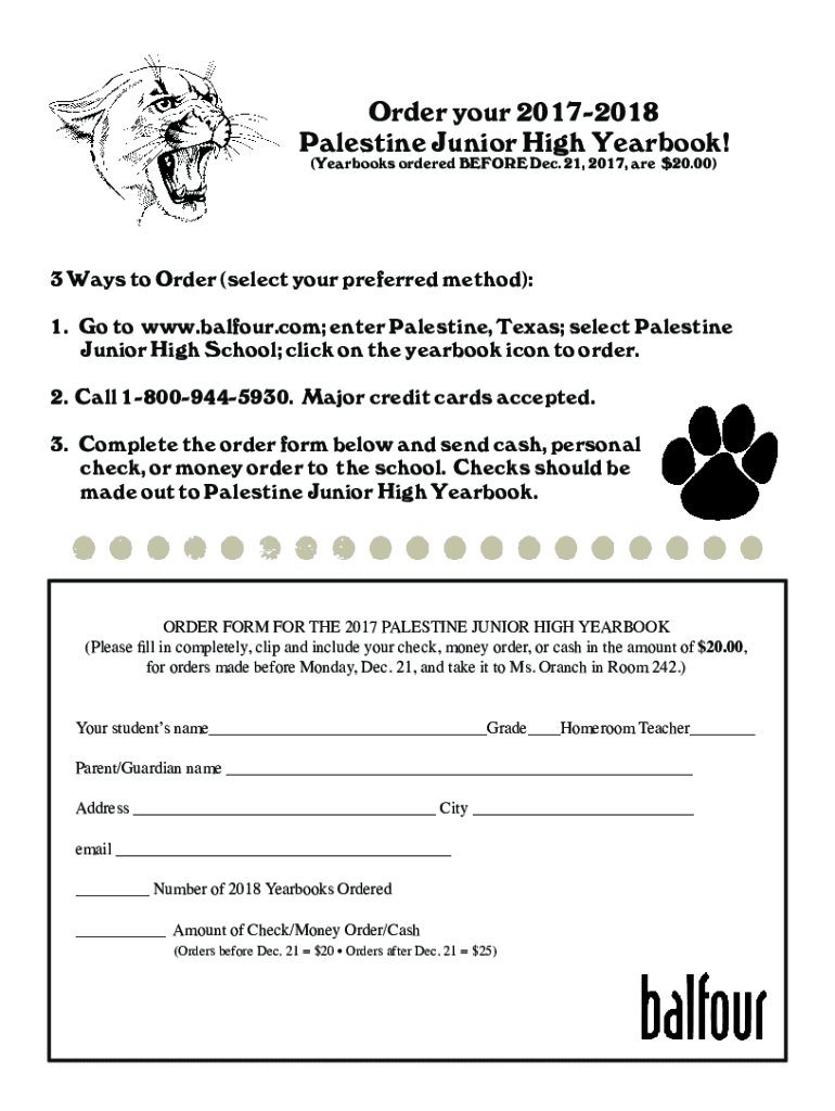 (Yearbooks ordered BEFORE Dec. 21, 2017, are $20.00)3 Ways to Order (select your preferred method):