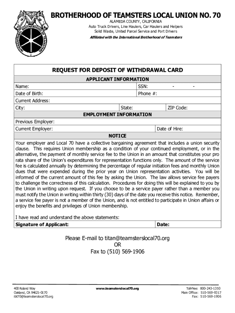 To fill out the form, provide accurate personal and employment information, adhere to any specific guidelines set forth by the union, and ensure all necessary signatures are included.
