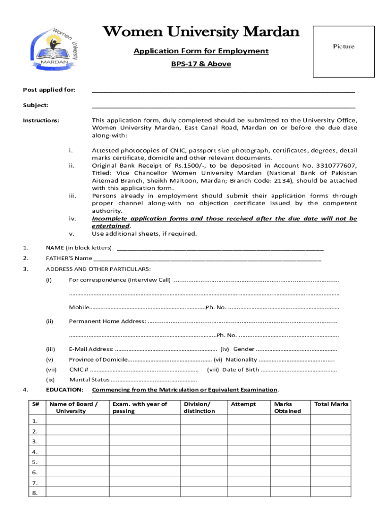 BPS17 & Above Post applied for:___Subject:___Instructions:This application form, duly completed should be submitted to the University