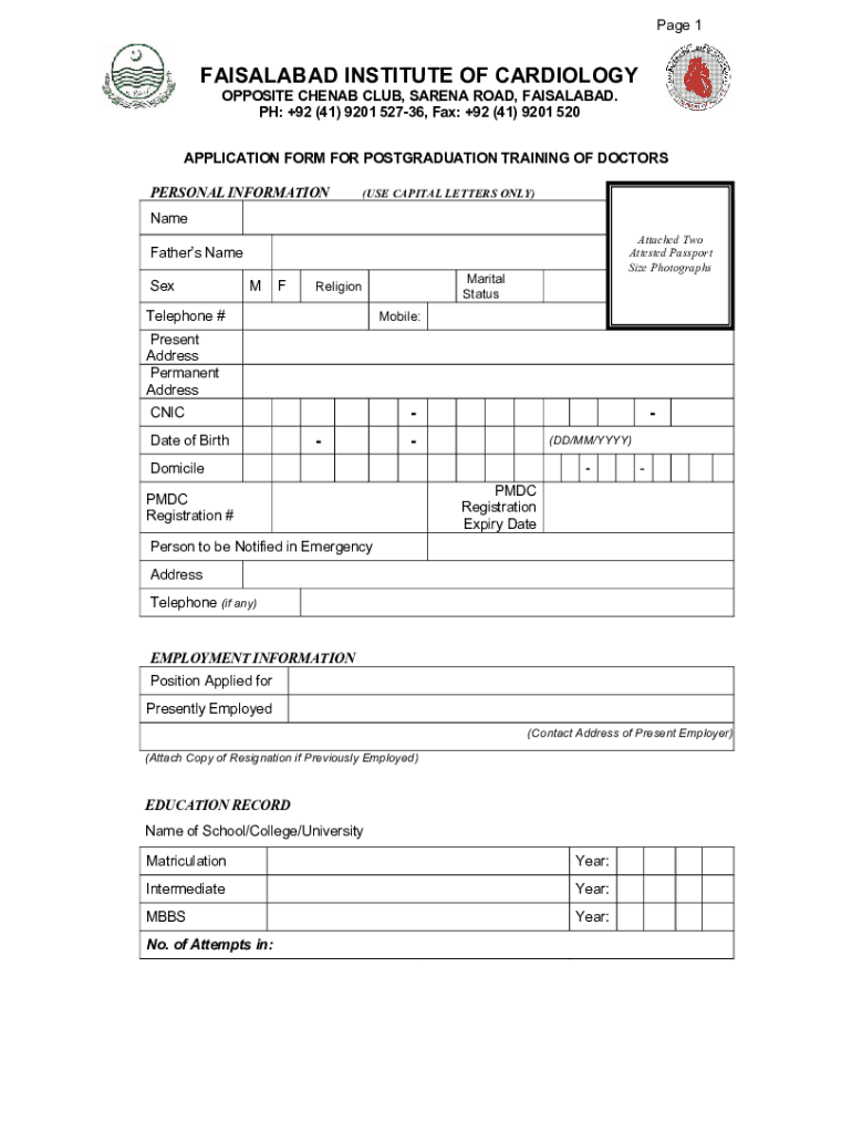 APPLICATION FORM FOR POSTGRADUATE TRAINING OF DOCTORS