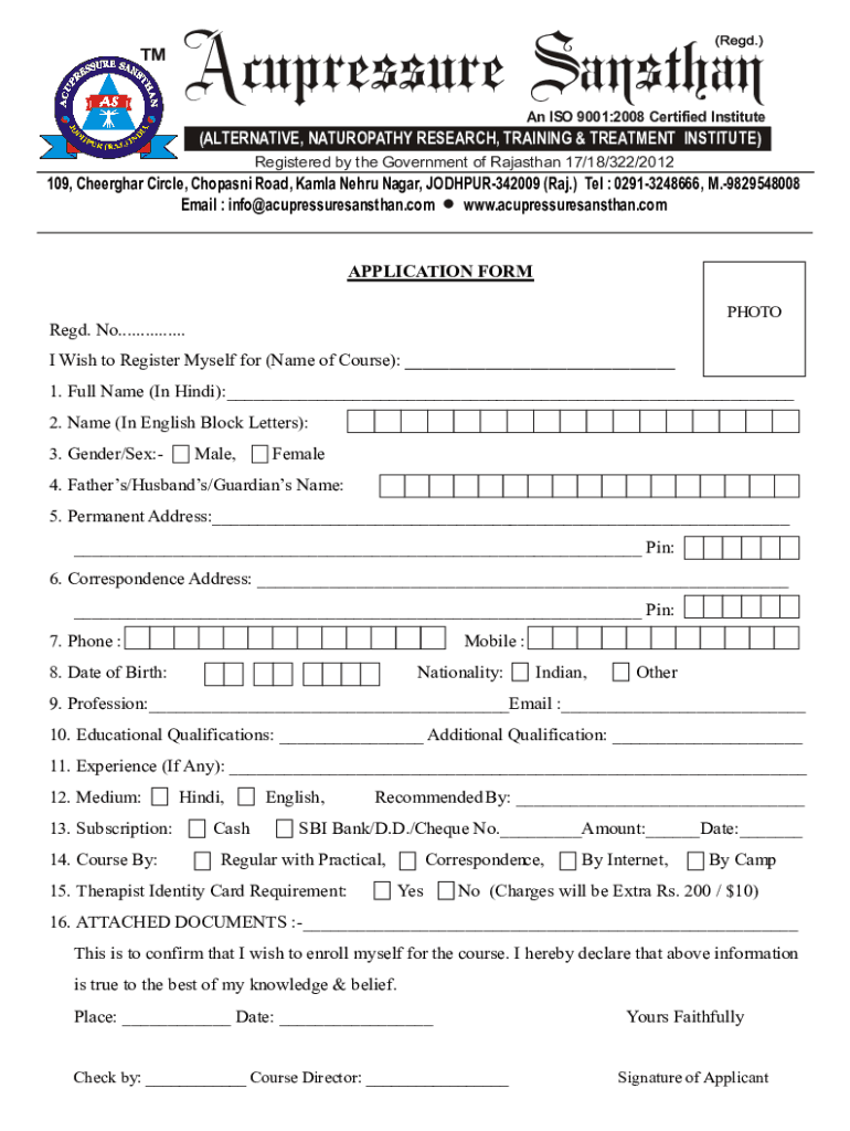 How to fill out acupressure certificate course form