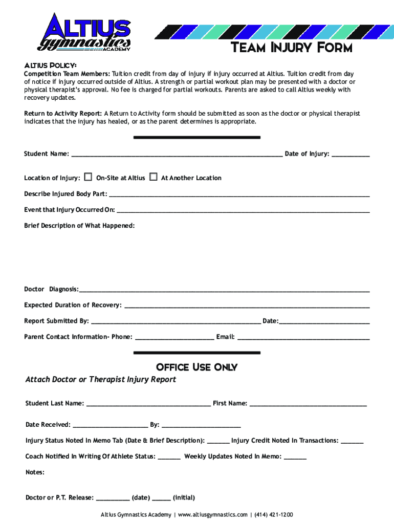 Allies Policy:Competition Team Members: Tuition credit from day of injury if injury occurred at Allies. Tuition credit from day