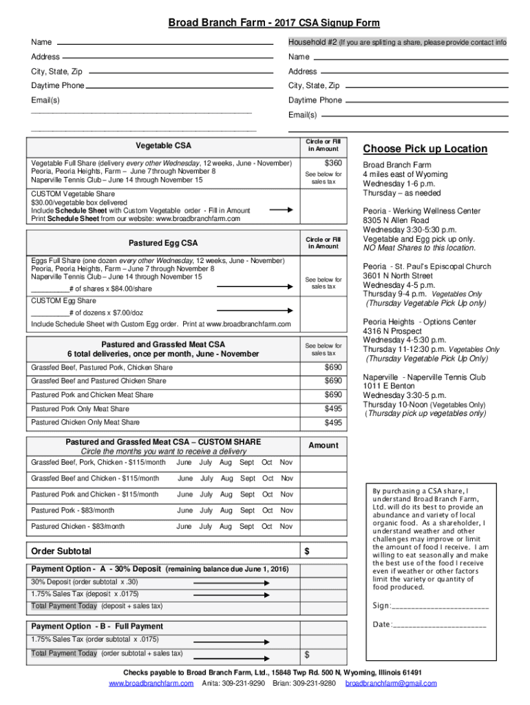 Broad Branch Farm 2017 CSA Sign up Form NameHousehold #2 (If you are splitting a share, please provide contact infoAddressNameCity, State, ZipAddressDaytime Phonetic, State, Email(s) Daytime Phone