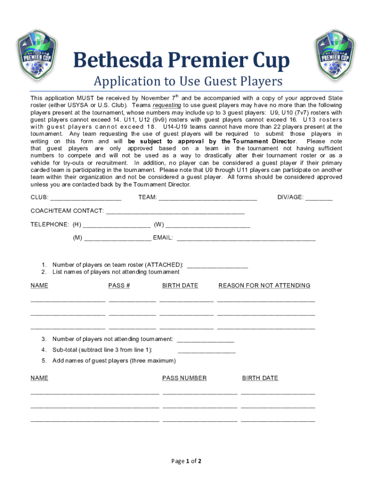 BethesdaPremierCupApplicationtoUseGuestPlayers