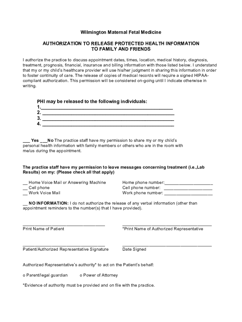Get the free Wilmington Maternal Fetal Medicine AUTHORIZATION TO ...