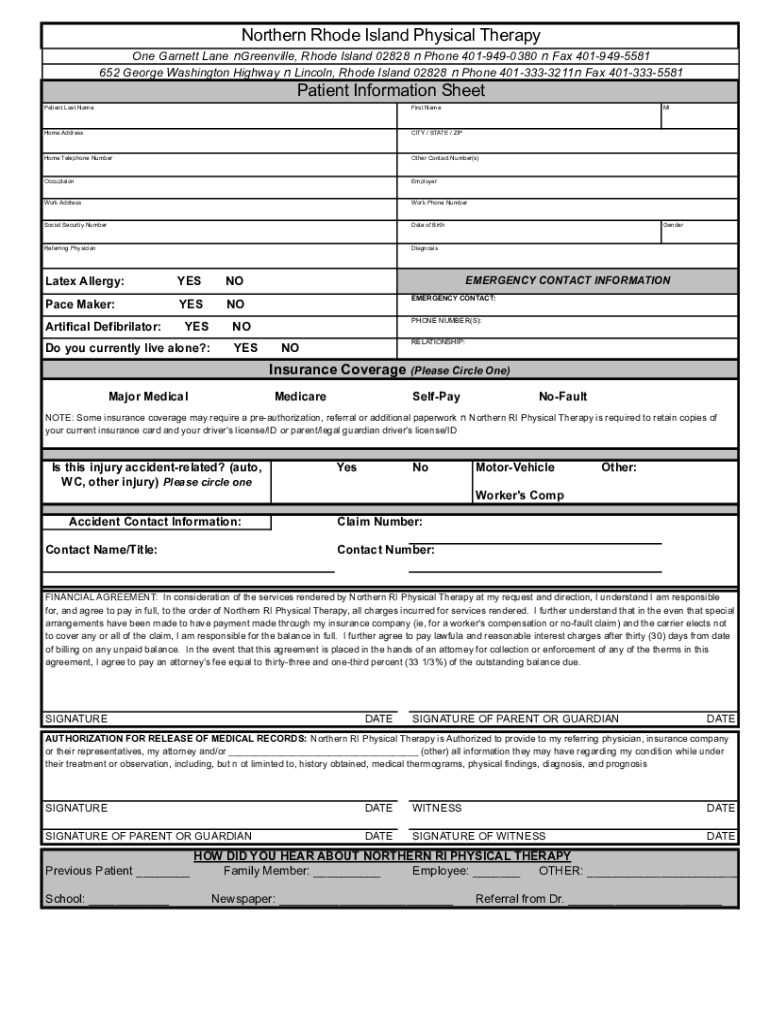 Get the free Northern RI Physical Therapy 1 Garnett Ln Greenville, RI ...