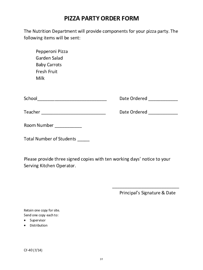 Fill out your pizza party order form online with pdfFiller!