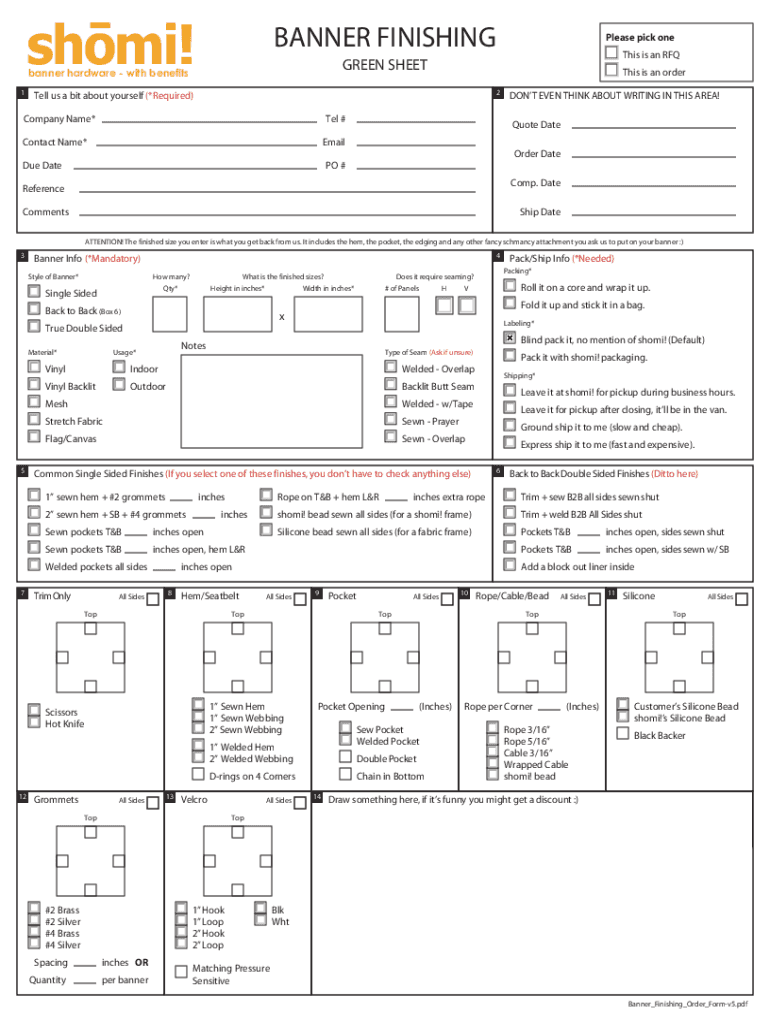 Semi!BANNER FINISHINGThis is an order 2Tell us a bit about yourself (*Required)Company Name×Tel #Contact Name×Saves is an GREEN SHEET banner hardware with benefits1Please pick oneClearDONT EVEN