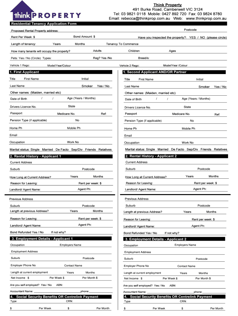 8.In the 'Proposed Rental Property' section, write down the address of the property you are applying for, along with the desired rental terms such as 'Rent Per Week' and 'Bond Amount'.
