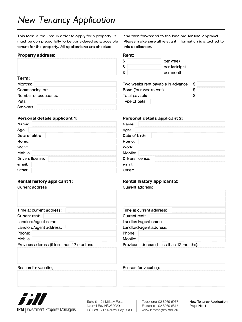 New Tenancy Application This form is required in order to apply for a property. It must be completed fully to be considered as a possible tenant for the property. All applications are checked Property