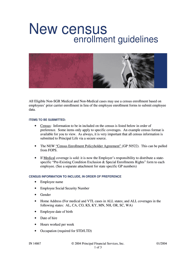 New census enrollment guidelines All Eligible Non-SGR Medical and Non-Medical cases may use a census enrollment based on employees prior carrier enrollment in lieu of the employee enrollment forms
