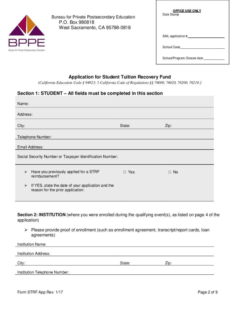 Business, Consumer Services and Housing Agency Gavin Newsom, GovernorBureau for Private Postsecondary Education 1747 North Market, Suite 225, Sacramento, CA 95834 P.O. Box 980818, West Sacramento,