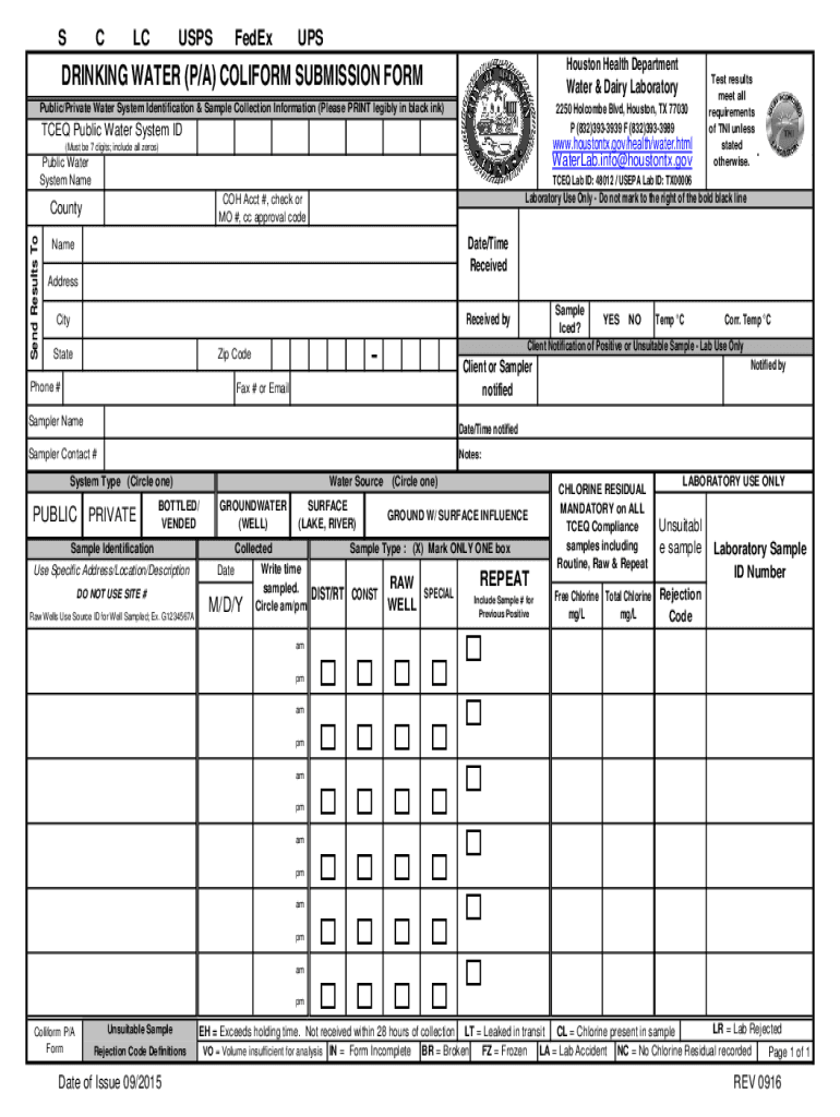 Get the free DRINKING WATER (P/A) COLIFORM SUBMISSION FORM Houston ...