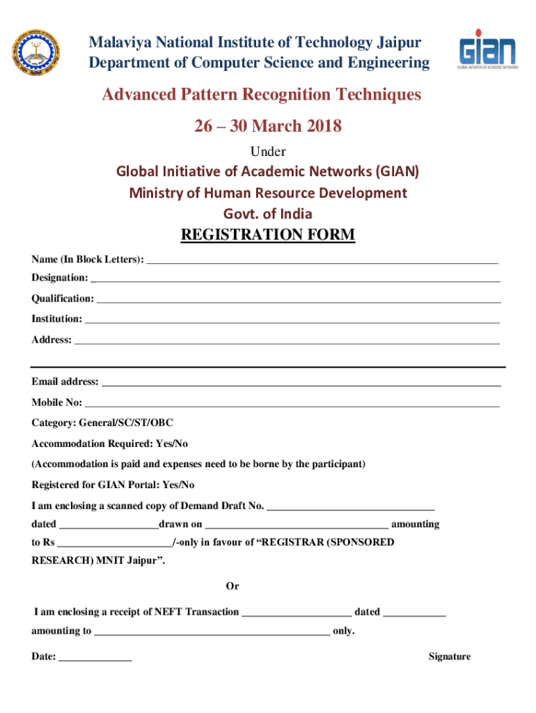 Malaria National Institute of Technology Jaipur Department of Computer Science and EngineeringAdvanced Pattern Recognition Techniques 26 30 March 2018 UnderGlobal Initiative of Academic Networks (GIANT)