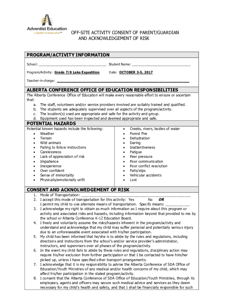 Get the free Lake expedition permission form 2017.docx