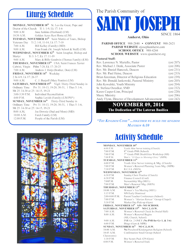 Get the free November 9 2014 - Saint Joseph Parish - Amherst OH