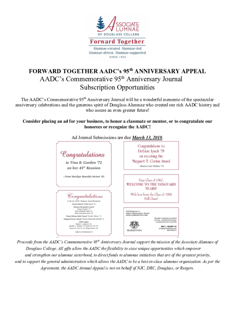 Get the free AADC 95 Anniversary Weekend & Alumnae Reunion Weekend
