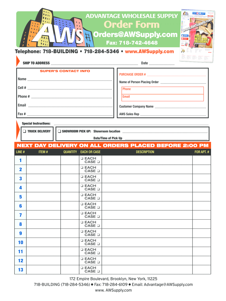 Purpose and Benefits of Using the Advantage Wholesale Supply Order Form