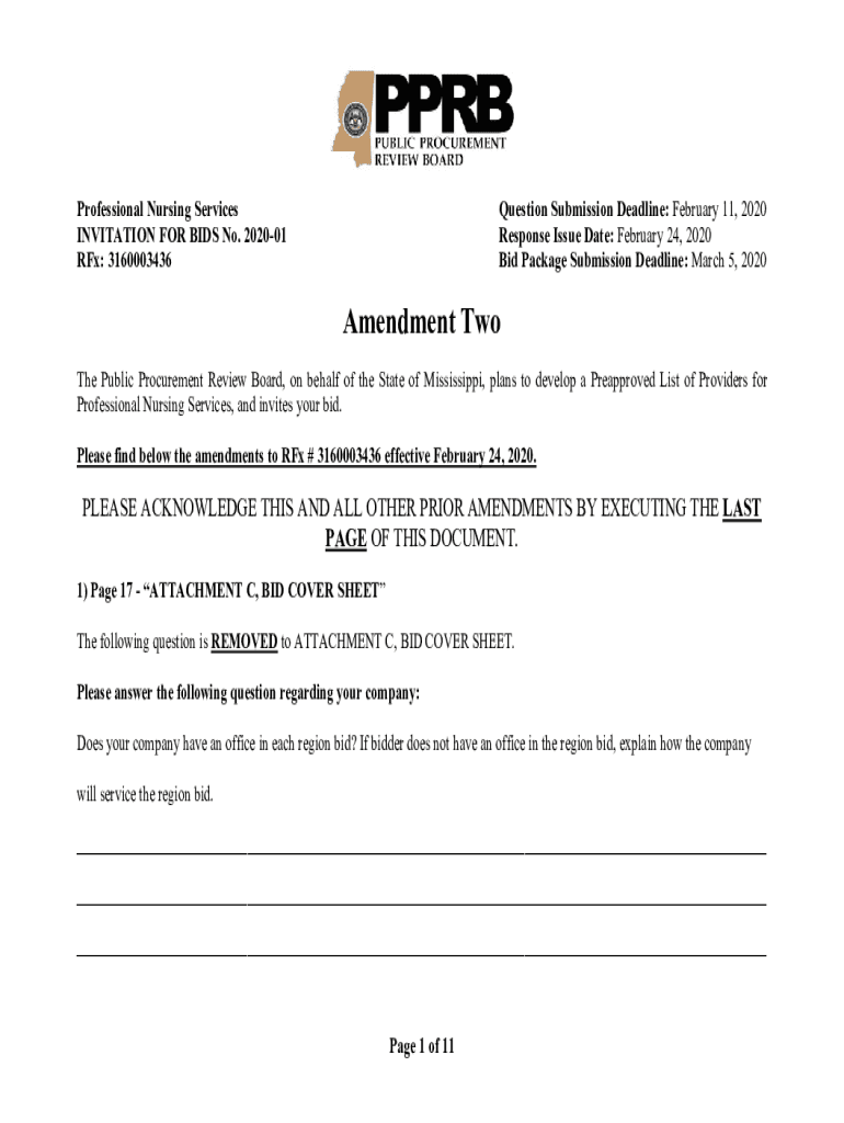 Get the free Amendment Two for IFB for Professional Nursing Services