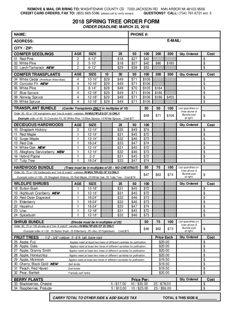 REMOVE & MAIL OR BRING TO: WASHTENAW COUNTY CD 7203 JACKSON RD ANN ARBOR MI 481039506 CREDIT CARD ORDERS, FAX TO: (855) 6655586 (please call to verify receipt) QUESTIONS? CALL: (734) 7616721 ext.