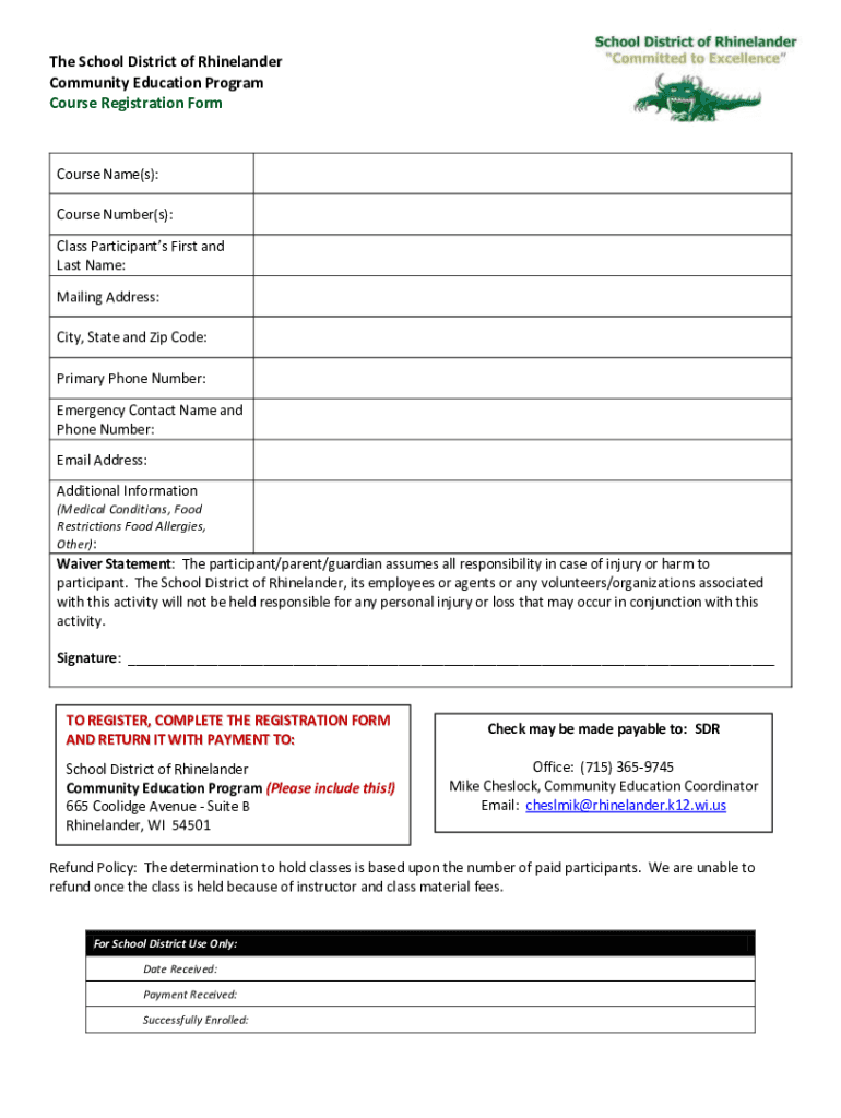 Community Education Classes is not the form you're looking for?Search for another form here.
