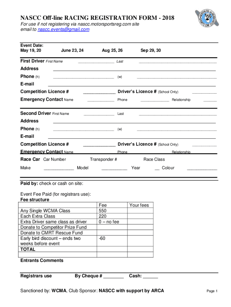 Get the free NASCC Off-line RACING REGISTRATION FORM - 2018