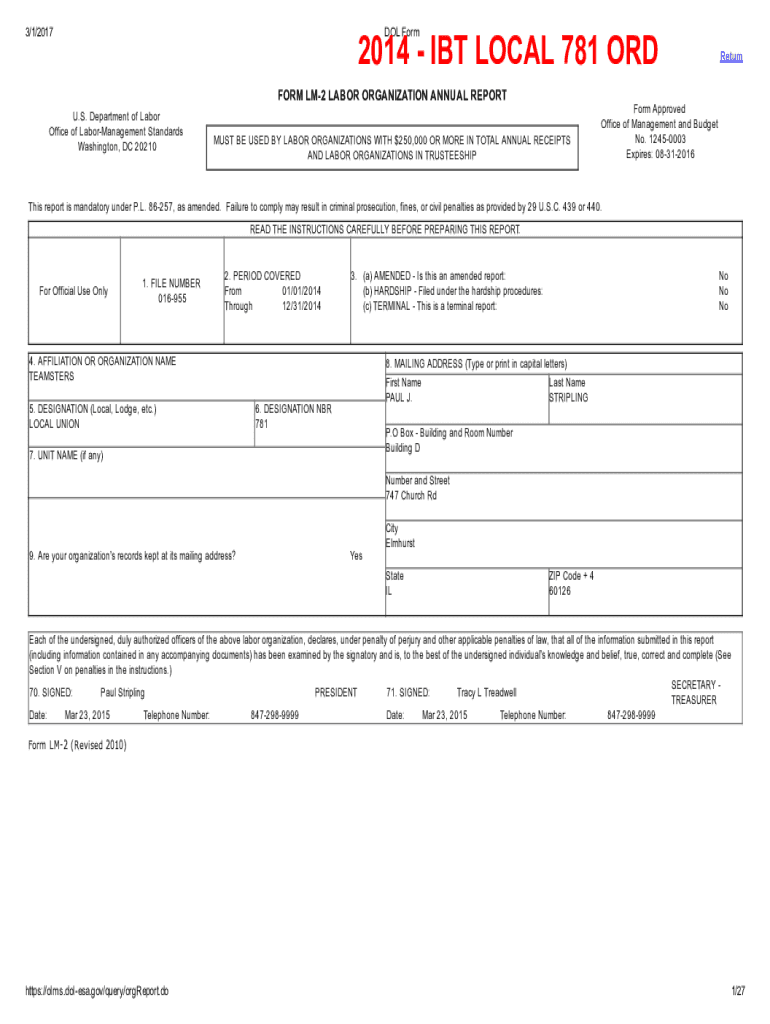 2014 IT LOCAL 781 ORD3/1/2017DOLFormFORMLM2LABORORGANIZATIONANNUALREPORT U.S. DepartmentofLabor OfficeofLaborManagementStandards Washington,DC20210MUSTBEUSEDBYLABORORGANIZATIONSWITH$250,000ORMOREINTOTALANNUALRECEIPTS