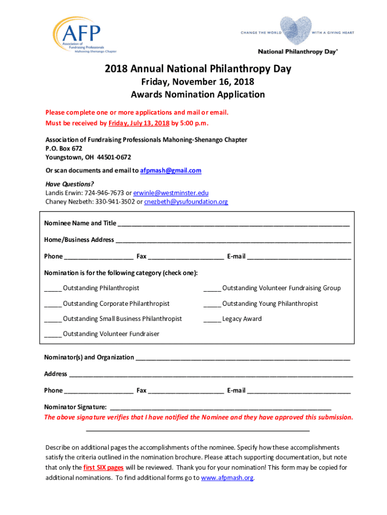 Get the free National Philanthropy Day Award Criteria and Nomination Form ...