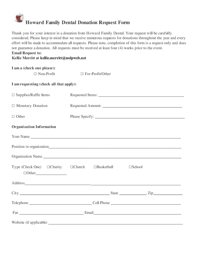 Howard Family Dental Donation is not the form you're looking for?Search for another form here.