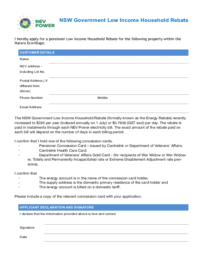 Get the free NEV Power - NSW Govt Low Income Household rebate form