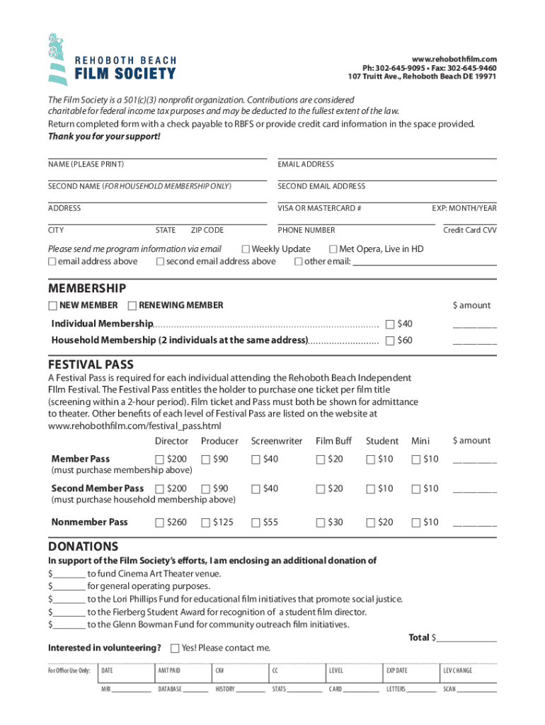 Get the free PDF MEMBERSHIP FESTIVAL PASS DONATIONS - Rehoboth Beach ...