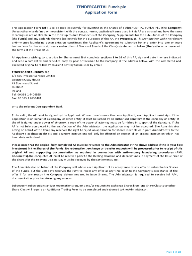 How to fill out tendercapital funds plc application?