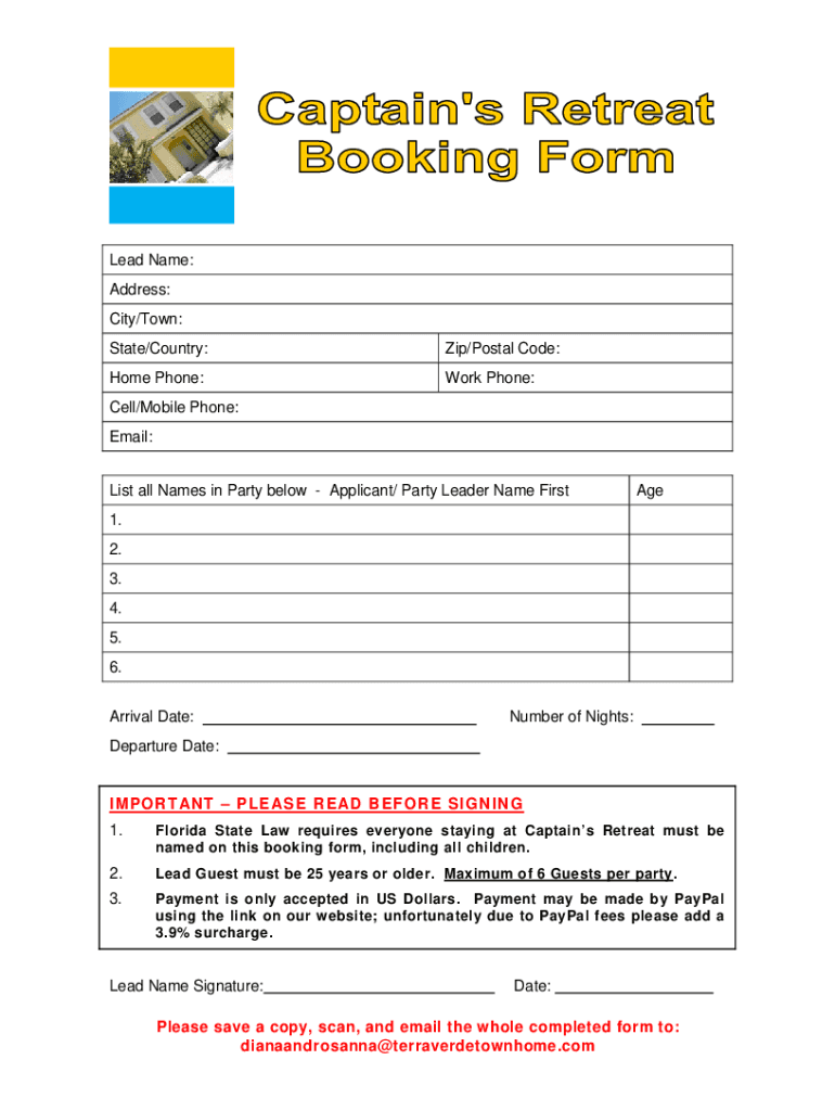 Final Captains Retreat Booking is not the form you're looking for?Search for another form here.