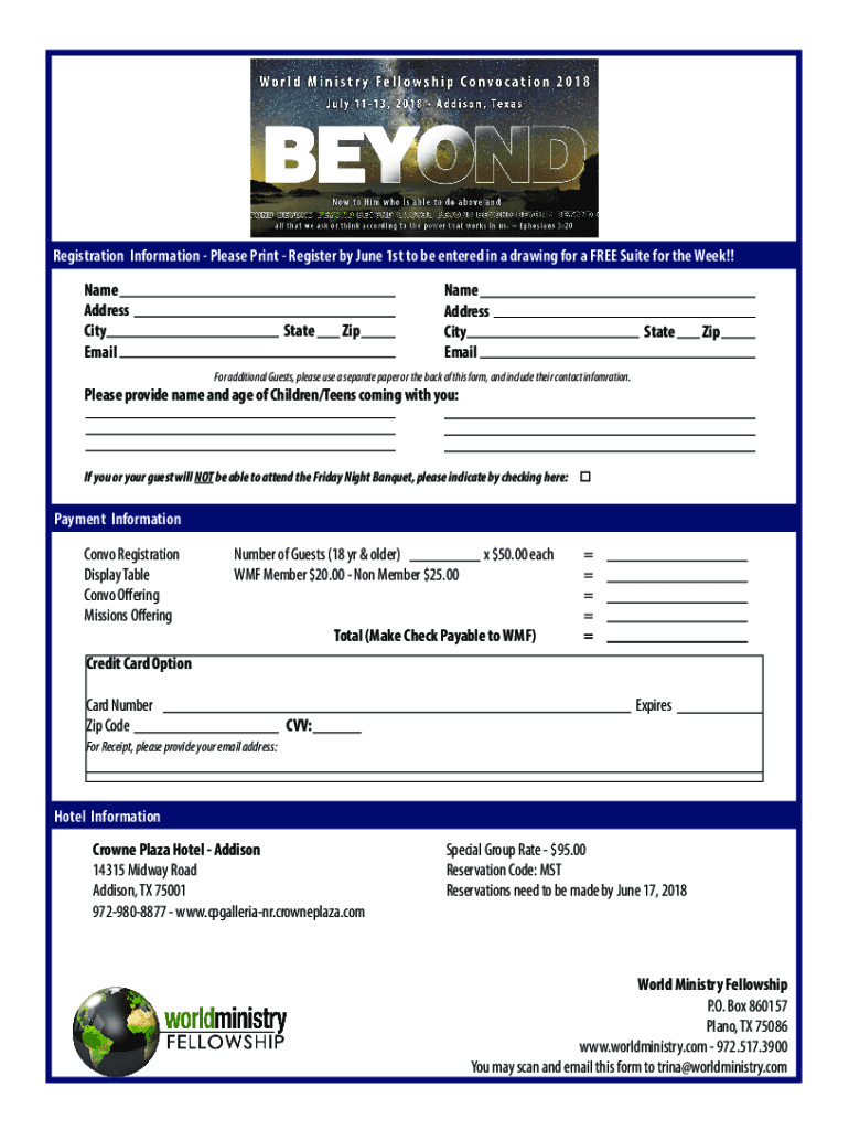 Registration Information Please Print Register by June 1st to be entered in a drawing for a FREE Suite for the Week!! Name Address CityEmailStateZipName Address CityEmailStateZipFor additional Guests,