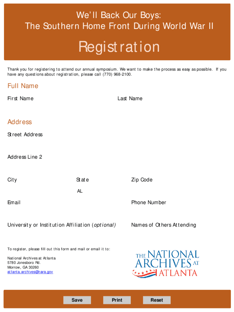 Get the free Register for Symposium at the National Archives in Atlanta. "We'll Back Our...