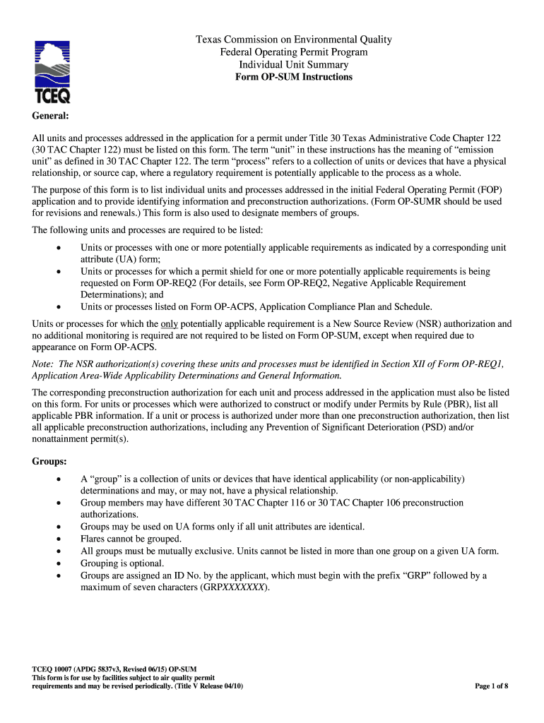 Get the free Texas Federal Operating Permit Individual Unit Summary Form