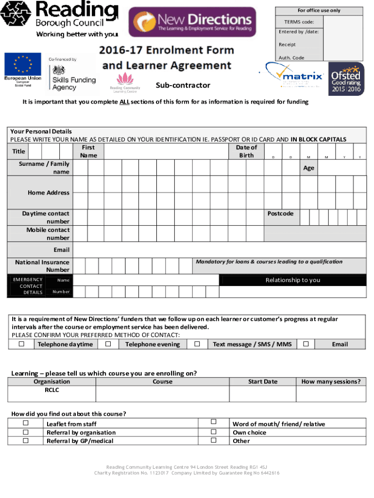 For office use only TERMS code: Entered by /date: Receipt Auth. CodeSubcontractor It is important that you complete ALL sections of this form for as information is required for fundingYour Personal