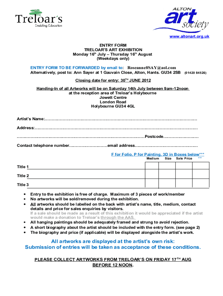 Get the free All artworks are displayed at the artist's own risk: Submission ... - btckstorage bl...