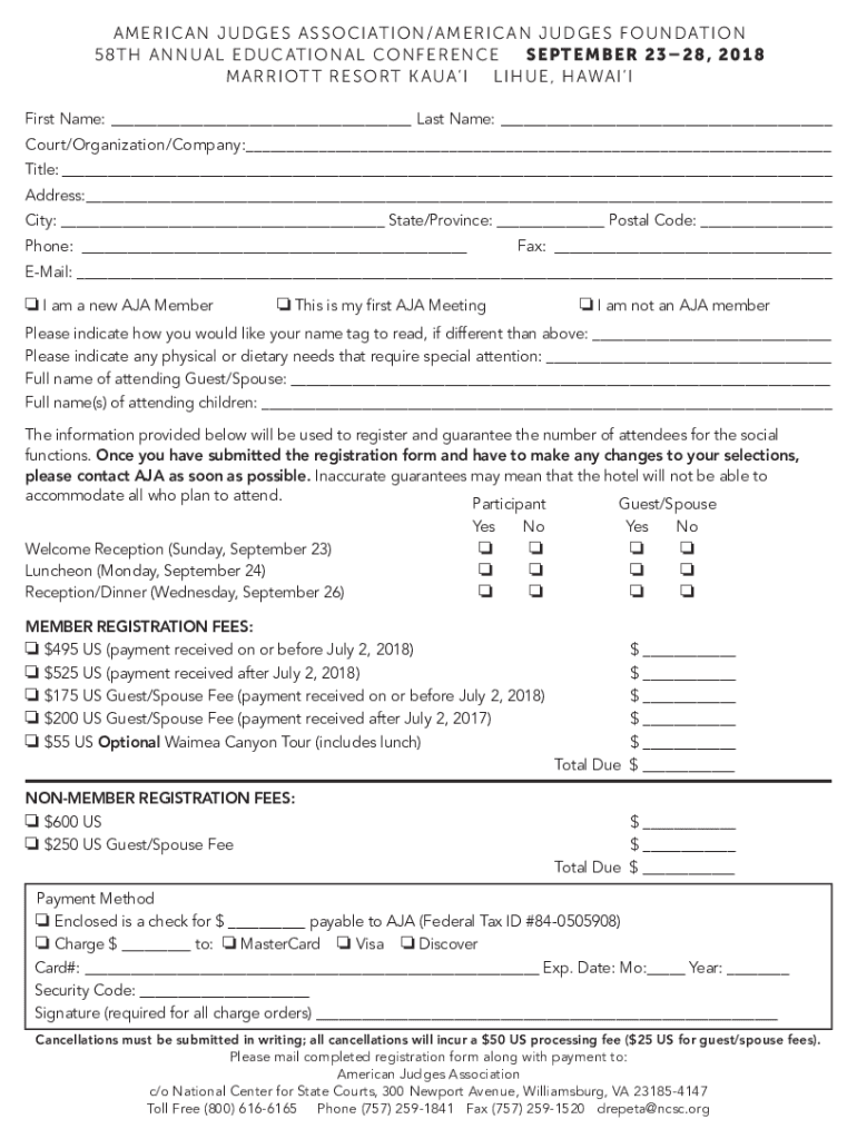 A MER I CAN JU D GES A S OCI AT IO N/AME RI CAN JUDGE S FO FOUNDATION 5 8T H A N NUN L ED U C NATIONAL L CO NFL RE NCE S EPT EMBER 23 28, 2 0 1 8 M A RIOT TR ESO RT KARA I LIH UE, HAWAII I First Name: