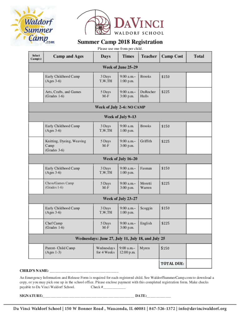 Summer Camp 2018 Registration