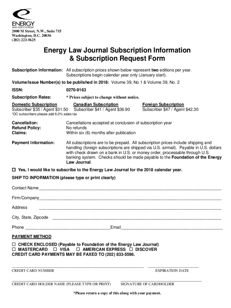 Get the free Energy Law Journal Subscription Information & Subscription ...