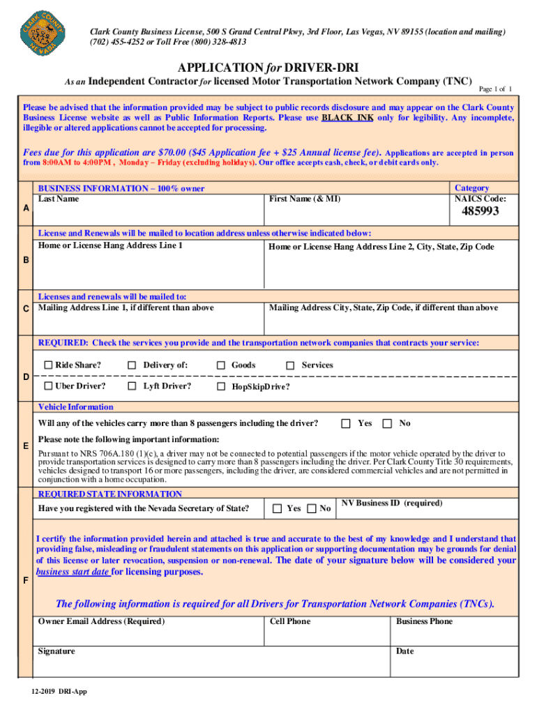 (702) 4554252 or Toll Free (800) 3284813APPLICATION for DRIVER DRI