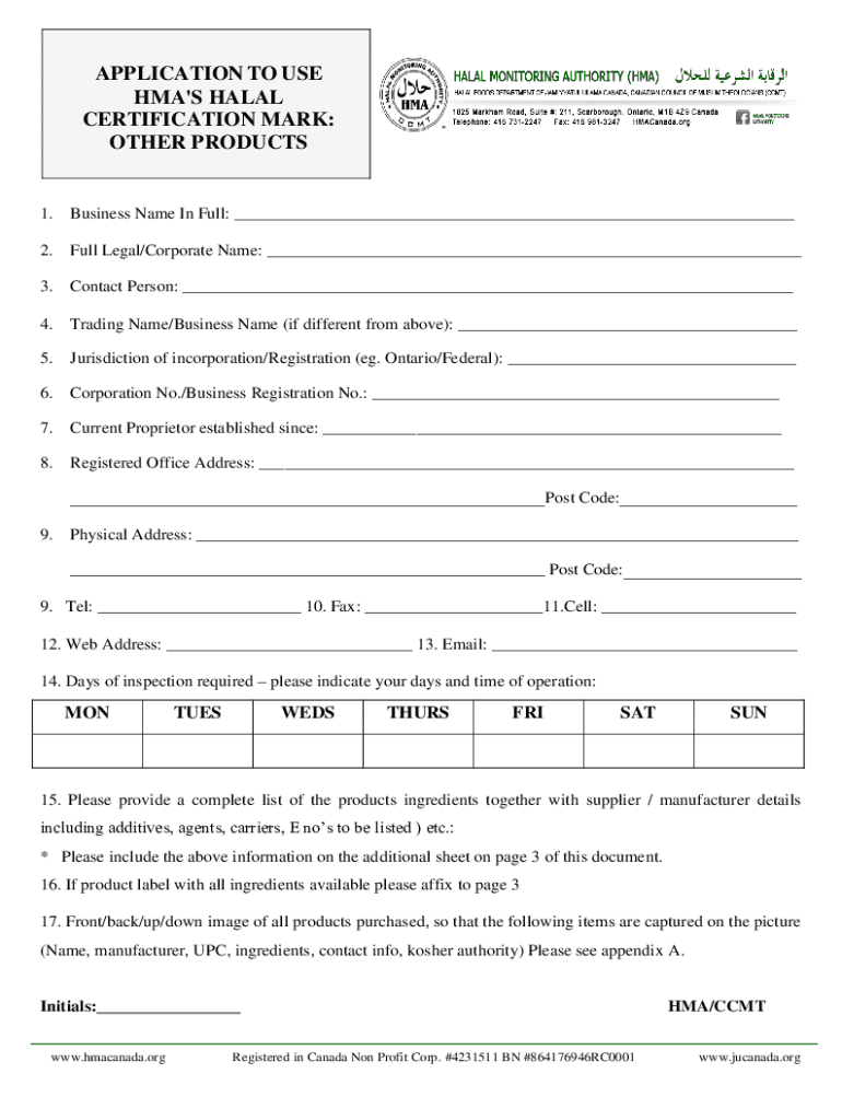 Get the free APPLICATION TO USE HMA'S HALAL CERTIFICATION MARK: CUTTING ...