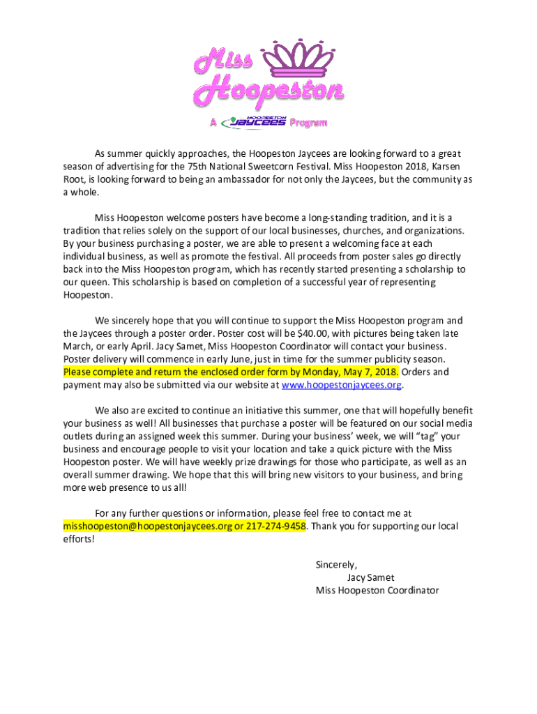 Get the free As summer quickly approaches, the Hoopeston Jaycees are looking forward to a great