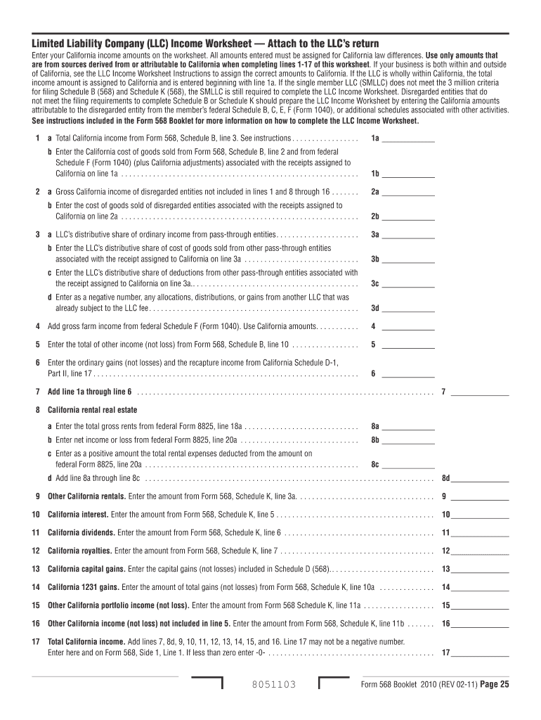 This worksheet is intended for Limited Liability Companies (LLCs) in California that need to report state income on their tax returns.