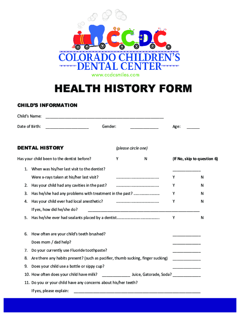 Typically, parents or guardians of children receiving dental care are required to file the child health dental history form.